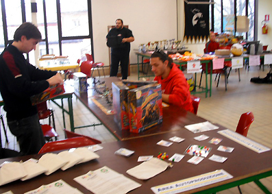 segreteria, con alle spalle il logo del Game Club Imola,